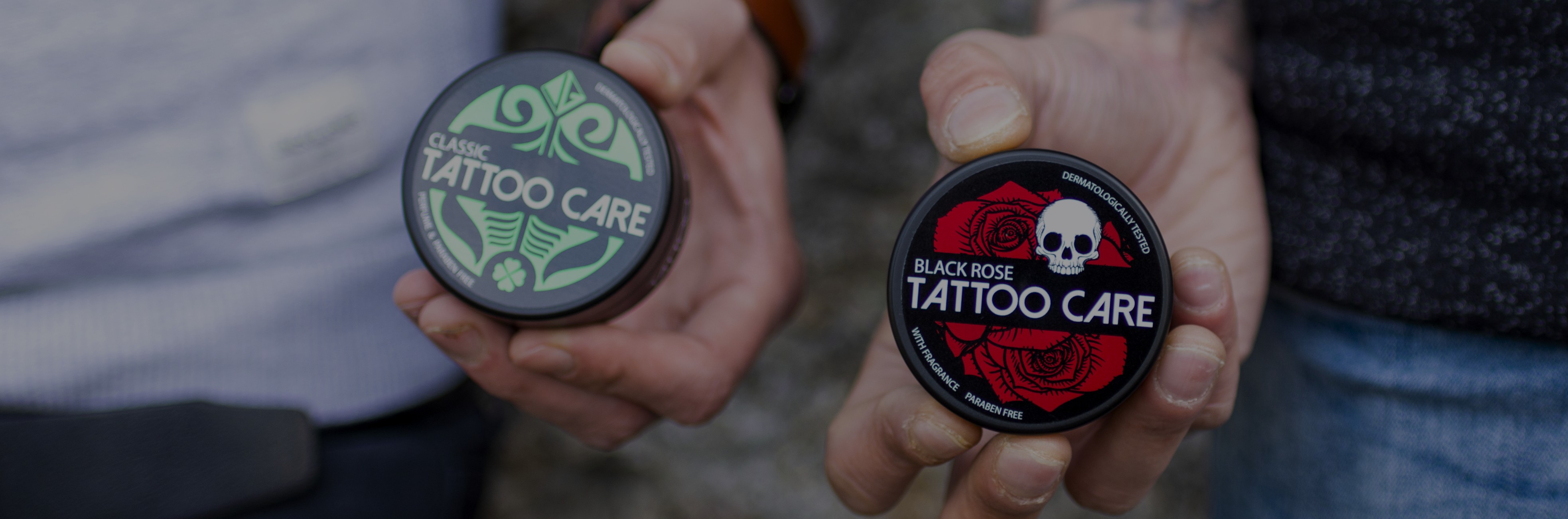 2Ein trockenes und sauberes Tattoo wird mit einer dünnen Schicht Tattoo Care Salbe eingeschmiert. Dabei die Händehygiene berücksichtigen!