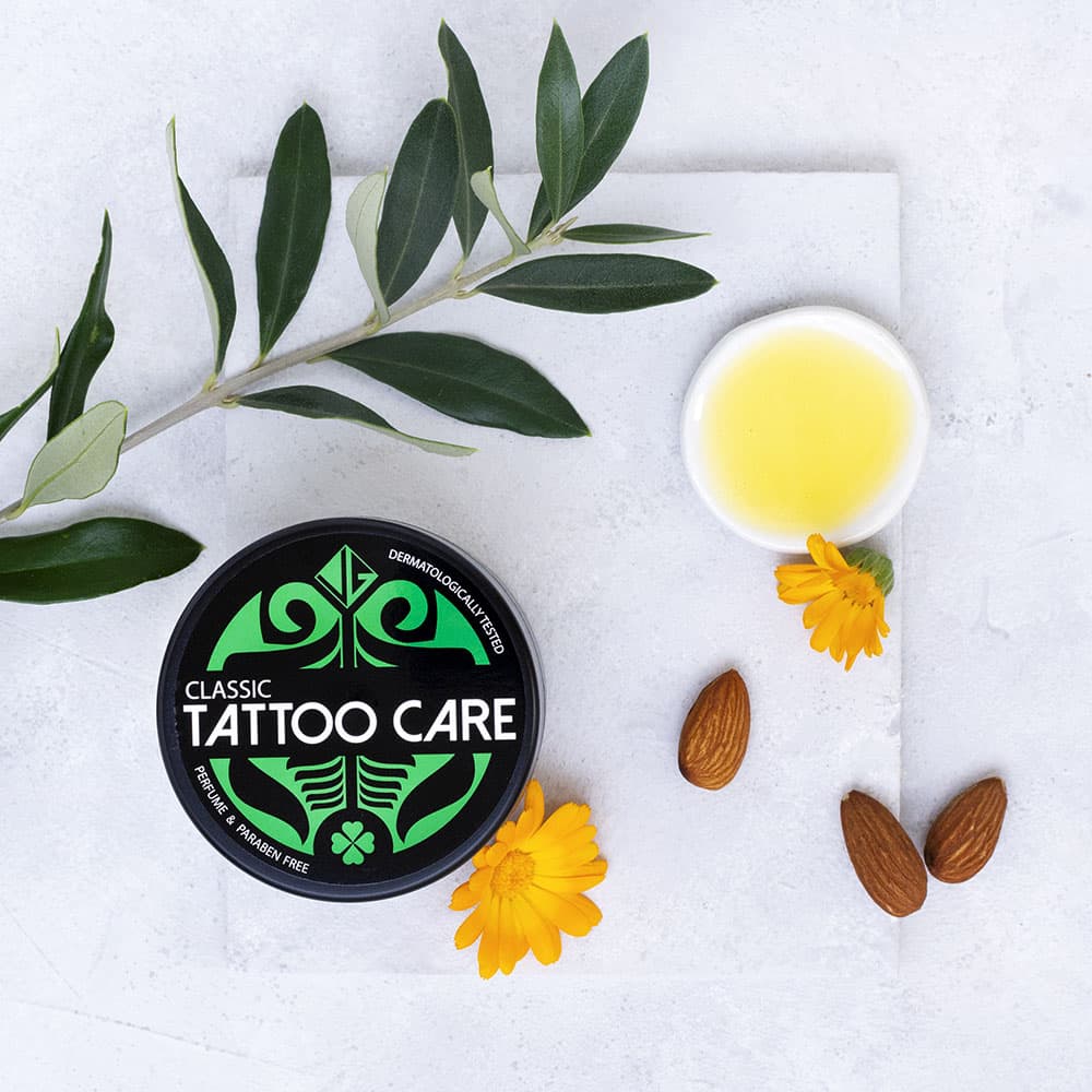 Tattoo-Pflege-Salbe aus ausgewählten natürlichen Inhaltsstoffen. Für eine Anwendung unmittelbar nach dem Tätowieren oder zur Pflege und Erneuerung älterer Tattoos. Du wirst die positive Wirkung schon bei der ersten Anwendung spüren und sehen. Für alle Hauttypen geeignet.